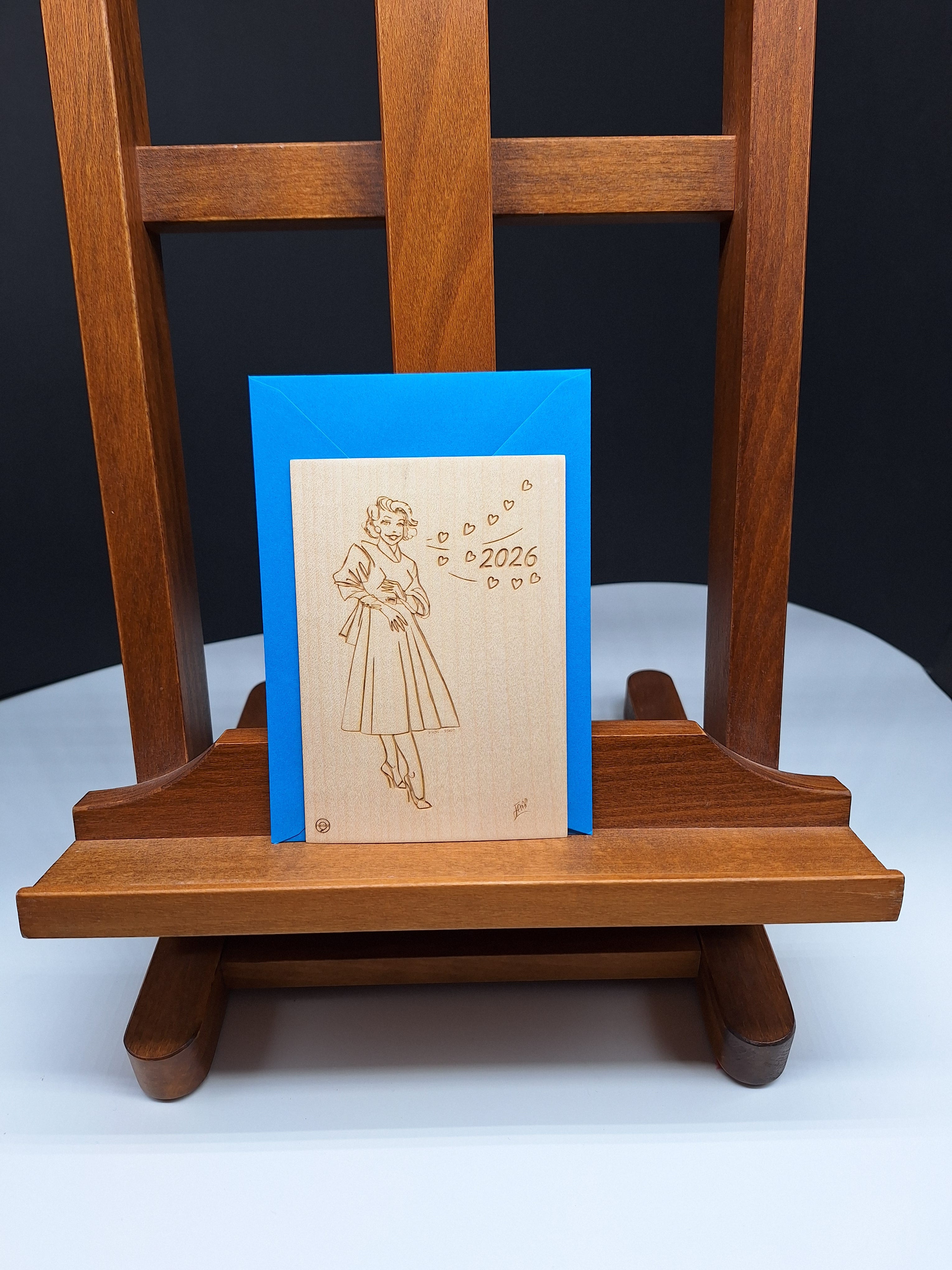 A cette occasion, l’atelier Pyrobd a réalisé deux cartes de vœux représentant Marylin d’après deux dessins de Bruno Bouteville Dit Jaap