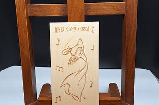 Si vous voulez souhaiter un anniversaire avec une jolie carte originale en bois pyrogravé et hors du commun, la voici.