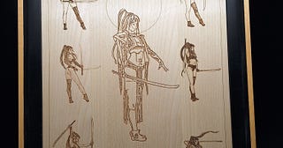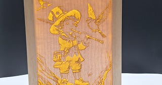 Petit tableau du joueur de flûte dessiné par Sébastien Pernet mis en lumière.